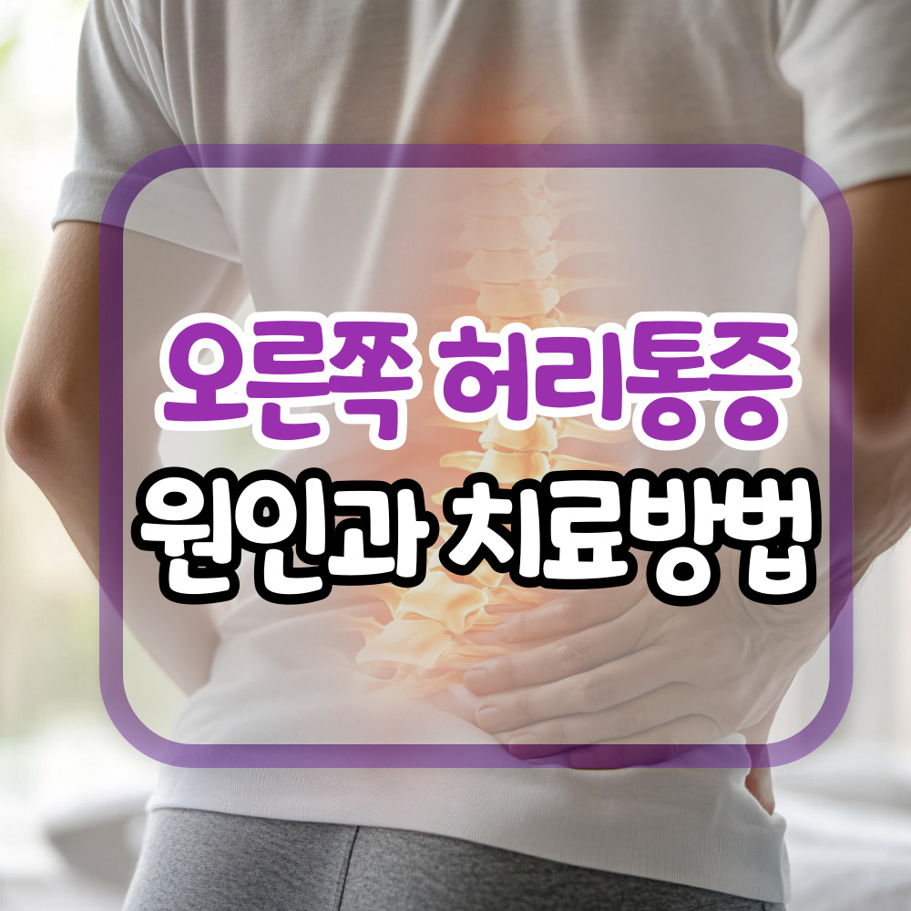 🧭오른쪽 허리 통증의 주요 원인1. 근육 및 인대 손상무리한 운동이나 잘못된 자세로 인해 허리 주변 근육이나 인대에 미세한 손상이 발생할 수 있습니다. 이로 인해 통증이 생기며, 특히 오른쪽 허리에 집중될 수 있습니다. 이러한 경우를 급성 요추 염좌라고 하며, 일반적으로 1~2주 내에 회복됩니다.2. 자세 불균형 및 생활 습관장시간 앉아 있거나 한쪽으로만 무게를 실는 습관은 척추와 골반의 불균형을 초래할 수 있습니다. 이로 인해 특정 부위에 과도한 부담이 가해져 통증이 발생할 수 있습니다.3. 디스크 질환추간판 탈출증(디스크)은 허리 통증의 흔한 원인 중 하나입니다. 디스크가 탈출하여 신경을 압박하면 통증이 발생하며, 오른쪽 허리에 집중될 수 있습니다. 이 경우 다리 저림이나 감각 이상 등의 증상이 동..